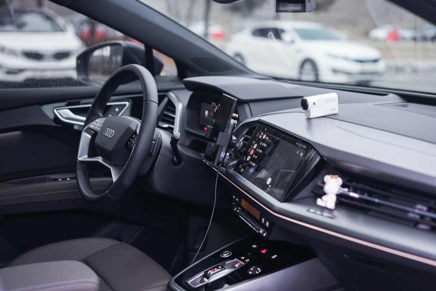 ① 자동차의 시동을 걸고 에어컨을 틀어줍니다.