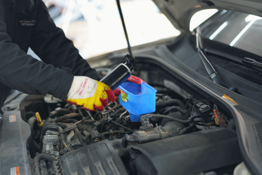 엔진오일을 주입할 때, 엔진오일을 넣고 불스파워를 넣어주면 됩니다. 불스파워 엔진코팅제는 엔진오일 4~6L 기준 한 병씩 주입하는 것을 권장하며, 대부분의 차량이 엔진오일 4~6L가 들어가기 때문에 오일 교환 시마다 한 병이라 생각하면 됩니다. 한 병 용량은 300ml 이기 때문에 기존 엔진오일을 넣으면서 함께 넣기 부담 없는 양입니다.