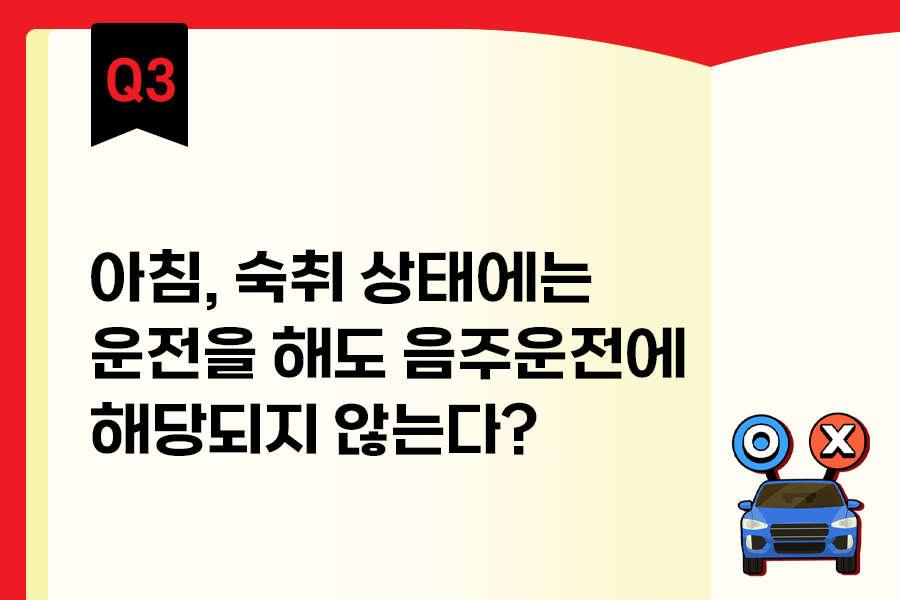 도로교통법에 나와있는 것처럼, 잠을 자고 오전에 일어나 씻고 나왔더라도, 숙취가 조금이라도 있다면 음주운전에 해당됩니다. 혈중알코올농도 0.03%부터 처벌 기준이기 때문에 음주 시간과는 전혀 상관없이 동일하게 면허 정지, 취소 처분을 받을 수 있습니다.