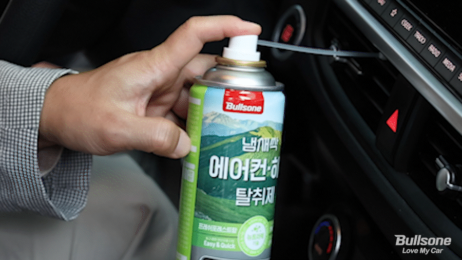 통풍구에 제품이 묻지 않도록 분사 대롱을 에어컨 히터 통풍구 깊숙이 주입하여 각 통풍구 별로 1초 이내 분사해주세요. 과다 사용하거나, 분사 대롱을 통풍구 깊숙이 넣지 않으면 차량의 전자/전기 장치에 손상을 일으킬 수 있습니다.