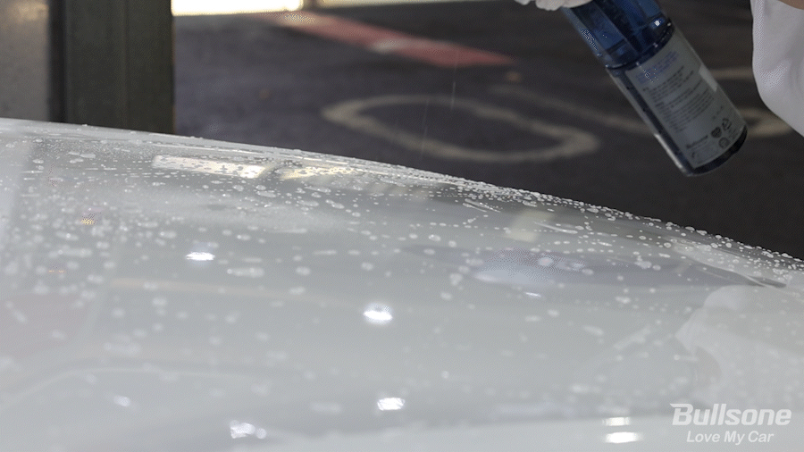 다음은 도장면에 철분제거제를 분사해보겠습니다. 자동차 표면 세차가 끝난 뒤, 적당한 거리에서 골고루 분사해주세요.